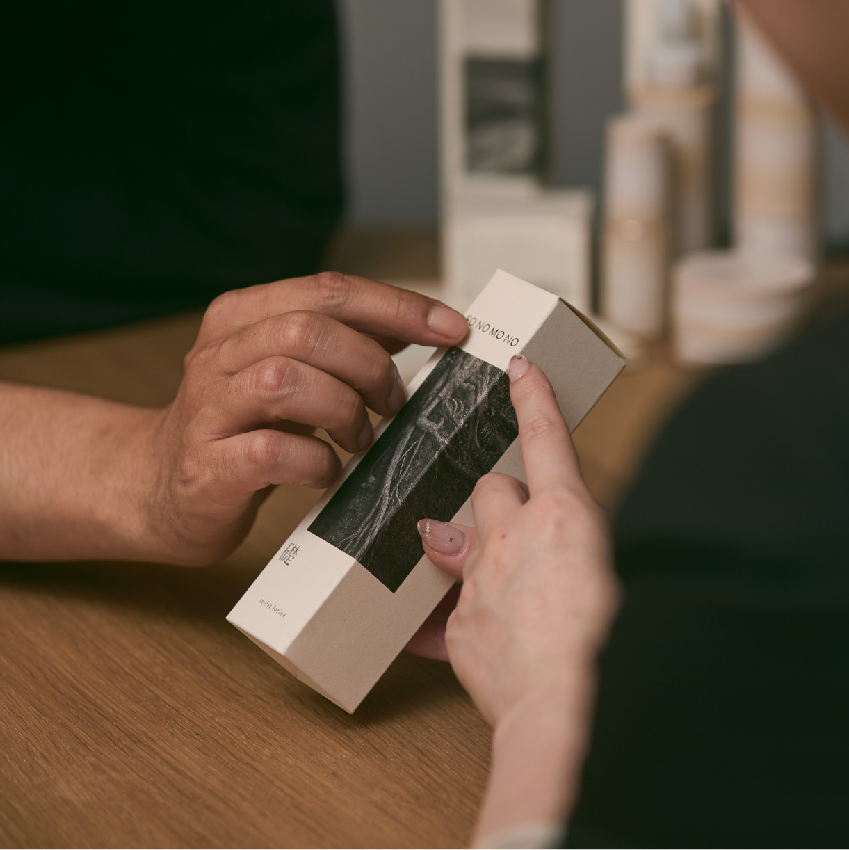 藤川:SONOMONOというブランドロゴに目を留めていただける方が多いように感じます。そこで立ち止まってくださったお客様に、商品一つひとつにあてられた漢字の意味をお伝えするケースがよくありますね。 お客様とお話ししていて多いのは、あれもこれも付けたくないといった声や、次から次に新商品が出て何を使ったらいいのか分からないという声です。その点、SONOMONOに関しては流行りに流されないという考え方がベースにあり、肌構造のことから考えてつくられている商品なので、迷うことなく試していただきたいと自信を持ってお勧めすることができます。