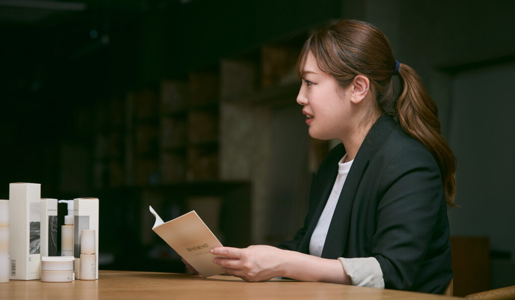 藤川:ブランドによってはアイテム数が非常に多く、基礎化粧にたくさんのプロセスを必要とします。一方でSONOMONOは5つで完結するのでシンプルです。お客様にとっては便利でわかりやすいという点が大きなメリットではありますが、中にはシンプルすぎて不安に思われる方も少なくありません。そういった方には、SONOMONOが余計なものを付け足すのではなく、肌本来の力をサポートするものであることをお伝えすると、安心して購入してくださいます。