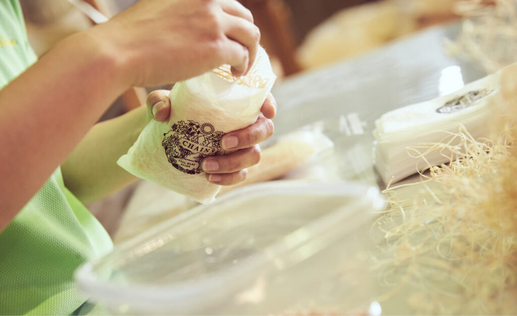 今回は戸田商工様の協力のもと、CHAINオリジナルのアロマサシェを制作。