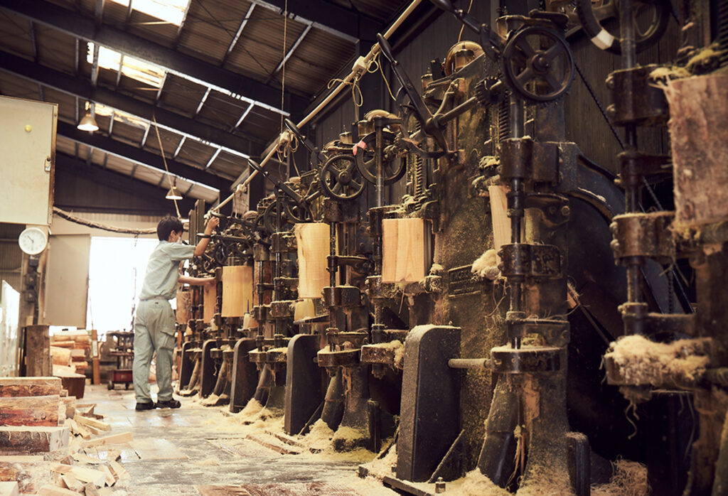 こんな時代背景の中でも生き残れたのは、先代の強いこだわりがあったから。高知県産の原木のみを使用し、調湿、抗菌、防カビなどの優れた効果効能を発揮してきた。工場の建設、機械の設計やメンテナンス、木を削る刃物の選定、すべてに気を配った全国最大クラスの設備だったため、各地から視察が来ていたほど。先代の技術は注目されていたのだとか。